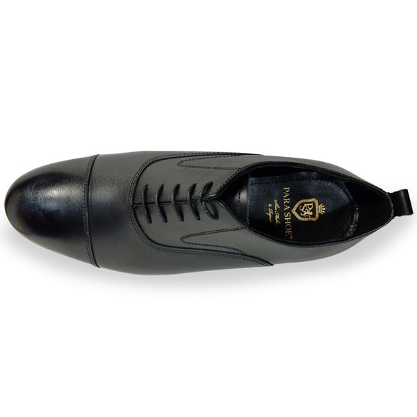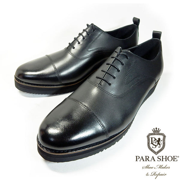 PARASHOE 本革 内羽根ストレートチップ(キャップトゥ)厚底ビジネスシューズ(ビジネススニーカー・ドレススニーカー)ワイズ3E(EEE)黒(ブラック)【メンズ革靴・スニーカー風ビジカジ紳士靴・オフィスカジュアル/大きいサイズ 27.5cm、28cm、28.5cm、29cm、29.5cm、30cm、31cm、32cm、小さいサイズ 22cm、22.5cm、23cm、23.5cm、24cm あり】