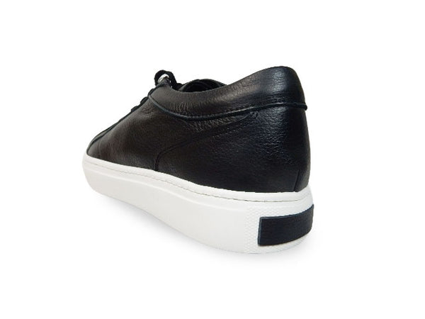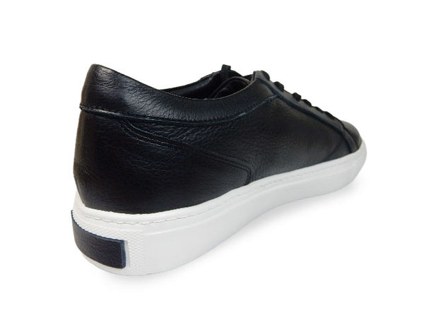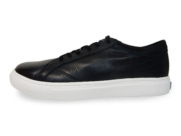 柔らかい上質な天然皮革(ソフト牛革)を使ったレザースニーカーです。国内工場にて、オパンケ式製法という縫い付け(ソールを側面から縫い付ける)方式で生産するしっかりした作りで、アッパー(甲革)も国産の高品質レザー(シボ感のあるシュリンクレザー)を使用した、純日本製のワンランク上のレザースニーカーとなっています。ライニング(裏地)は、抗菌防臭機能に優れた繊維素材「ユニフレッシャー」を使用し、菌の増殖を抑え嫌な臭いを防ぎます。ソールは柔軟性(屈曲性)とクッション性に優れ、かつ非常に軽量でとても履き良く、ワイズも4E(EEEE)とゆとりがありますので、幅広甲高の方にもおすすめできます。どんな服にも合わせやすい、ビジネスでもカジュアルでもお履きいただけるデザインとなっています。